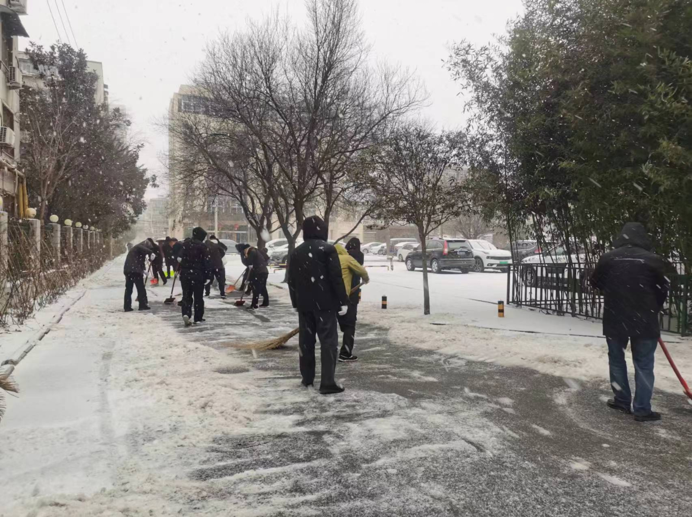不畏严寒除积雪 全力以赴保安全 至尊国际迅速组织党员职工召开义务扫雪活动